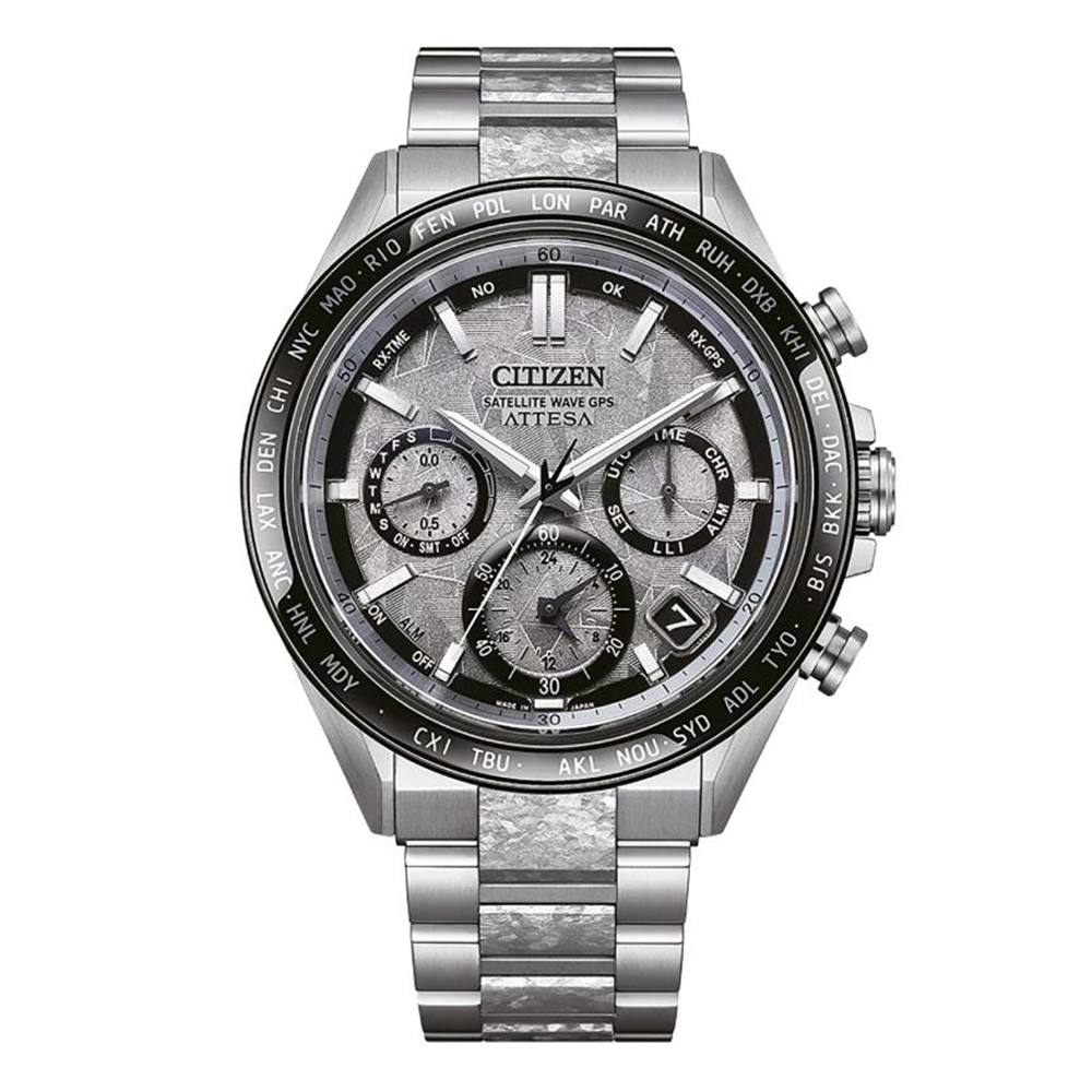 Citizen GPS Funkuhr Marke Citizen Glasart Saphirglas Ziffernblattfarbe schwarz-silber Schliesse Dornschließe Ref Nr.: CC4076-65A Bandart Gliederband Durchmesser 44mm Wasserdichte 100 Meter Werkart Funk - Solar Ziffernblattart Strich Ziffernblattzeichen Analog, Chronograph Material Super Titanium -