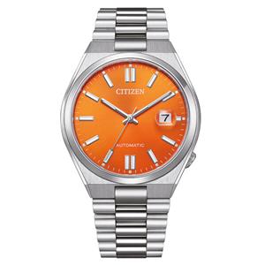 Citizen Automatik Marke Citizen Glasart Saphirglas Ziffernblattfarbe orange Schliesse Faltschließe Ref Nr.: NJ0151-88Z Bandart Gliederband Durchmesser 40mm Wasserdichte 100 Meter Werkart Automatik Ziffernblattart Strich Ziffernblattzeichen Analog, 3-Zeiger mit Datum Material Edelstahl, matt/poliert -