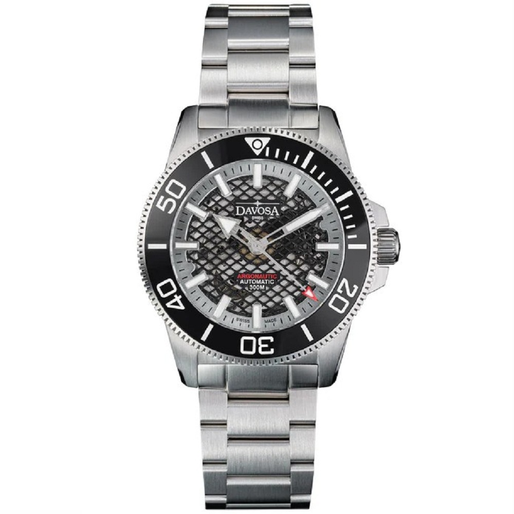 Davosa Argonautic 41 Shark Diver Marke Davosa Glasart Saphirglas Ziffernblattfarbe schwarz Schliesse Faltschließe Ref Nr.: 16154150 Bandart Gliederband Durchmesser 41,5mm Wasserdichte 300 Meter Werkart Automatik Ziffernblattart Strich Ziffernblattzeichen Analog, 3-Zeiger ohne Datum Material Edelstahl, matt
