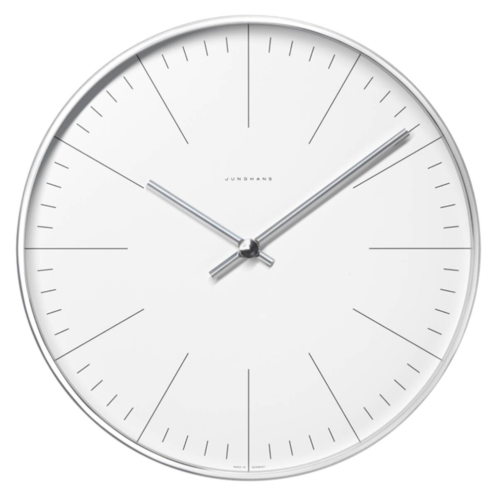 Junghans Funkwanduhr MaxBill Marke Junghans Ziffernblattfarbe weiß Ref Nr.: 374/7000.00 Durchmesser 30cm Ziffernblattart Strich Ziffernblattzeichen Analog, 2-Zeiger ohne Datum Material Aluminium